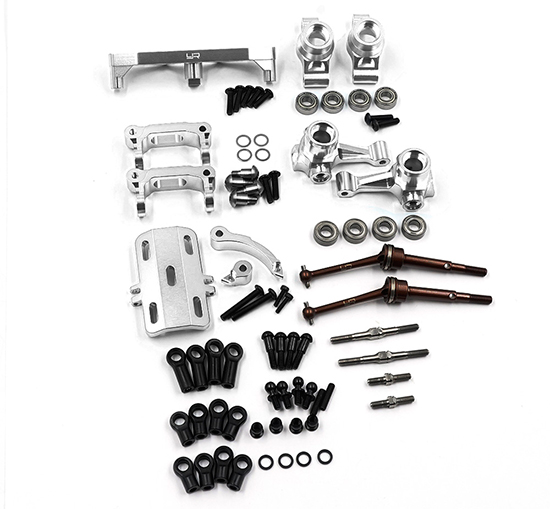 タミヤのWR02C用のアルミアップグレードパーツのフルセット。 |