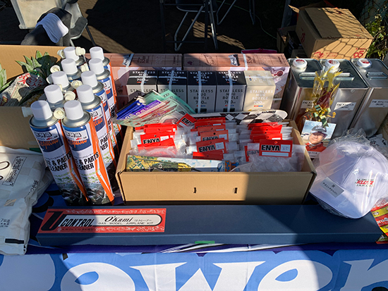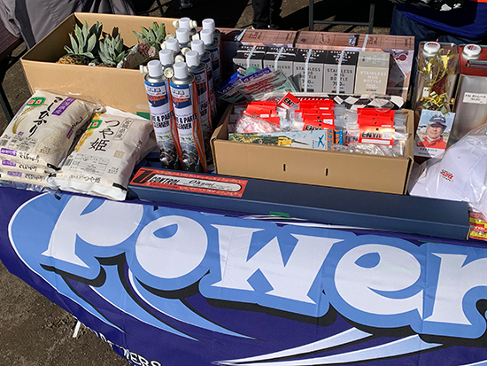 Uコンキットや副賞のワイン、グロー燃料、デカールからプラグに燃料チューブなど模型ライフには欠かせないたくさんのご協賛品をメーカー様にいただきました。ありがとうございます。 |