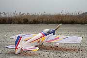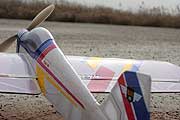 | 巧みな細工が美しい機体。上部は透明オラカバ、底部は赤のオラカバでコーティングされているので機体の状態を把握しやすく背面飛行時の誤操作を防ぎます。大きな主翼は抜群の安定性を実現し、ホバリング、トルクロール、ナイフエッジなど様々な3Dパフォーマンスを容易にこなします。主翼・胴体取り外し可能 |