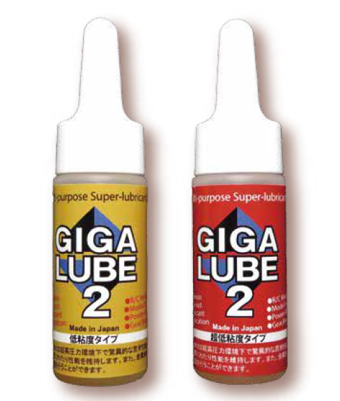 | ◆使用方法 GIGA LUBU 2 は、R/C各モデルの金属部や軸受け回転部、グローエンジンや動力モーターの駆動部等に少量を滴下してください。金属部表面に塗布すると、防錆、防湿ができます。また錆ついたボルトやナットをゆるめる場合は滴下後数分放置してから取外し作業をしてください。 |