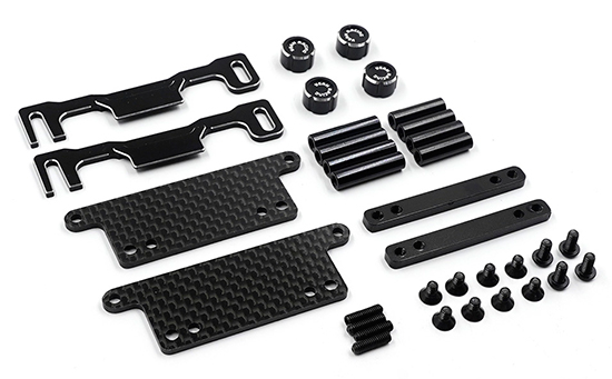 京商オプティマプロ用のアルミ&グラファイトパーツ このバッテリーマウントで、レトロな京商バギーにショートパックを取り付けましょう。 付属のつまみネジでパックを素早く交換できます。 対応車種:京商 オプティマ ミッド / プロ用 材質:アルミ / カーボン カラー:ブラック